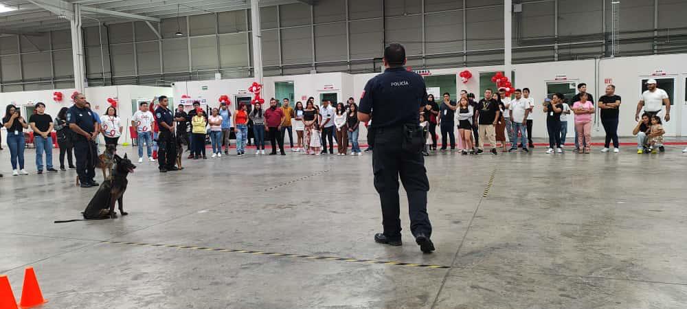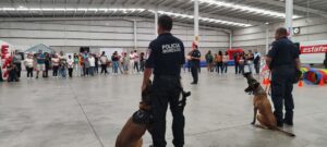 Por su parte, elementos de la Unidad de Policía Canina realizaron una demostración sobre la función y operatividad de los binomios caninos con los que cuenta la unidad, como lo son la búsqueda e identificación de explosivos y narcóticos.