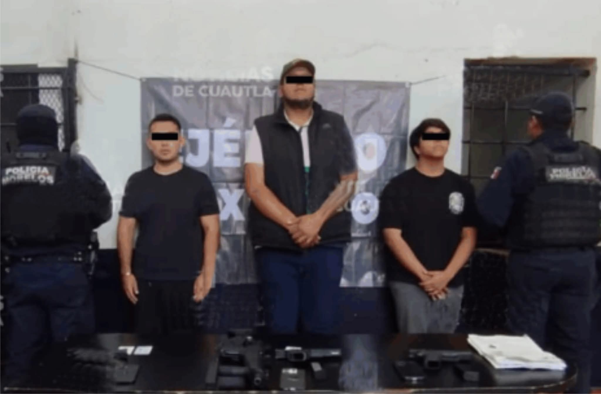 Los detenidos fueron identificados como Antwan Gadiel de 18 años de edad, con domicilio en Los Colorines, Jiutepec; Mario “N” de 31 años, vecino de Puxtla, en Cuautla, y Oscar “N” de 30 años de edad, residente de Ixtapaluca Edo de México.