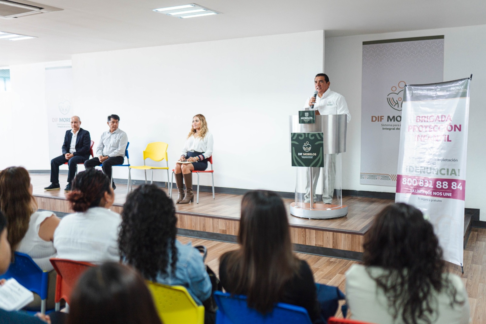 En el evento estuvo presente Gustavo Navarro Muro, adscrito a la fiscalía especializada en atención a grupos vulnerables; Diana Flores Segura, coordinadora de Delitos Sexuales y Trata de Personas de la Fiscalía General del Estado (FGE) de Morelos; Eva Karina Sánchez Melgar, coordinadora de Atención Temprana de la (FGE); Norma Natividad Hernández Hernández, subprocuradora de Restitución y Representación Jurídica de Niñas, Niños, Adolescentes y la Familia del SEDIF; procuradoras y procuradores de los sistemas DIF municipales.
