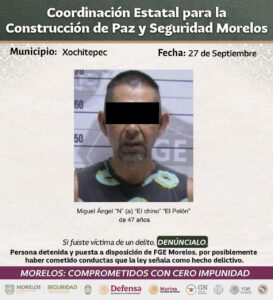En conferencia de prensa y con la asistencia del secretario de Gobierno, Juan Salgado Brito, e integrantes de la Mesa de Coordinación Estatal para la Construcción de Paz y Seguridad, el titular de la Secretaría de Seguridad y Protección Ciudadana (SSPC) Morelos, Miguel Ángel Urrutia Lozano, informó sobre 31 detenciones relevantes que contribuyen a mejorar la tranquilidad y paz social en el estado.