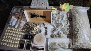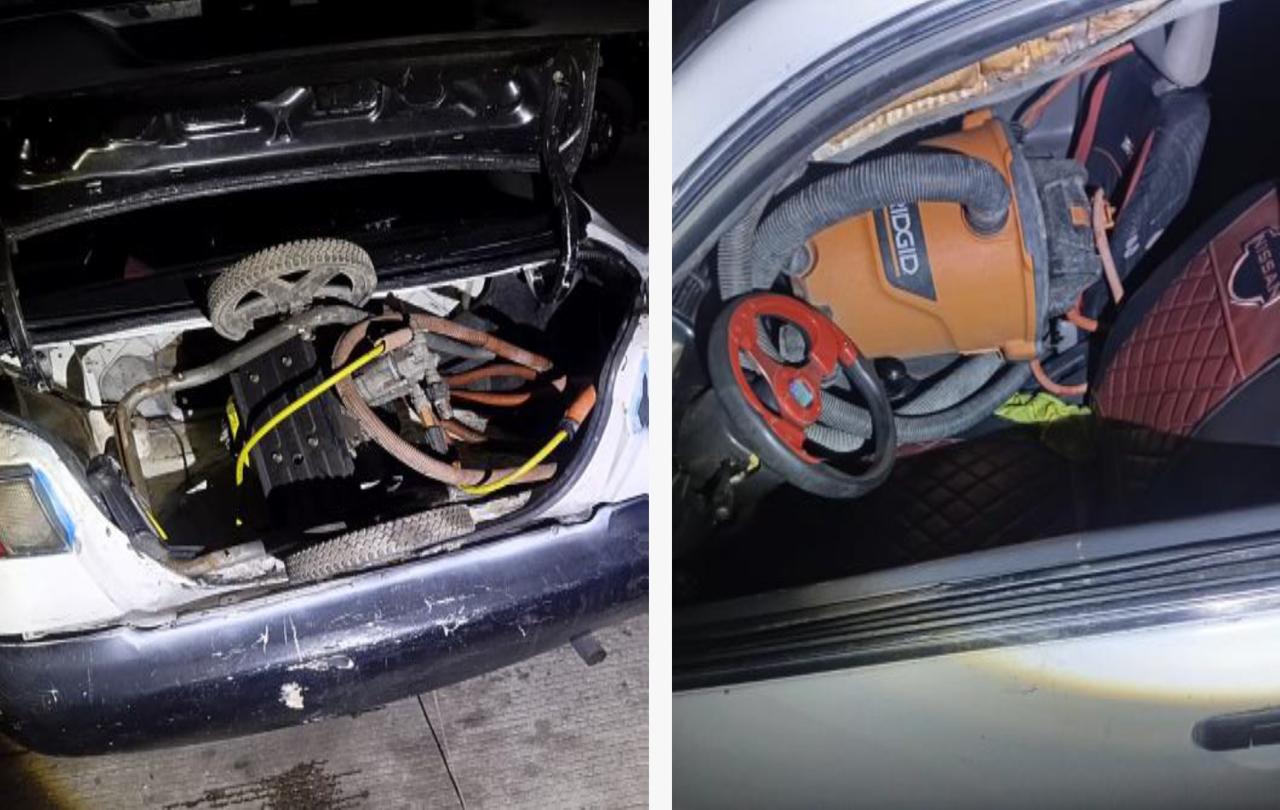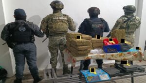 Urrutia Lozano resaltó la detención de Alejandro Manuel “N” de 59 años y Adrián “N” de 38 años, a quienes les aseguraron 26 bolsas con sustancia similar al “cristal”, un arma de fuego corta calibre 9 milímetros con un cargador metálico y 14 cartuchos útiles de uso exclusivo de las fuerzas armadas, además de un inhibidor de señal tipo “Jammer” utilizado en el bloqueo de señales GPS para el robo de autotransporte de carga y de vehículos.